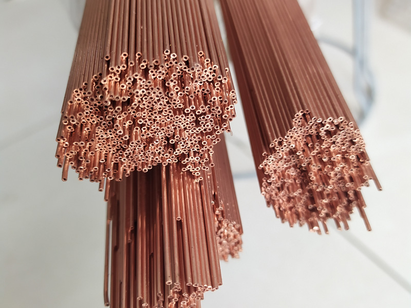 微孔铜管具有直径更小、壁厚更厚、尺寸精度更高、表面粗糙度更低和性能更好的特点,常见的应用于地铁接地、机械加工、电气工业,比如导电嘴、乙炔切割嘴等。